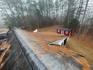 This project in Greenwood, SC began when a homeowner called Rush Exterior Cleaning for a routine gutter cleaning and house wash. Our team arrived on schedule and did a quick inspection before starting. That inspection showed the roof was cluttered with debris, which would keep the gutter cleaning from being as effective as the customer wanted.